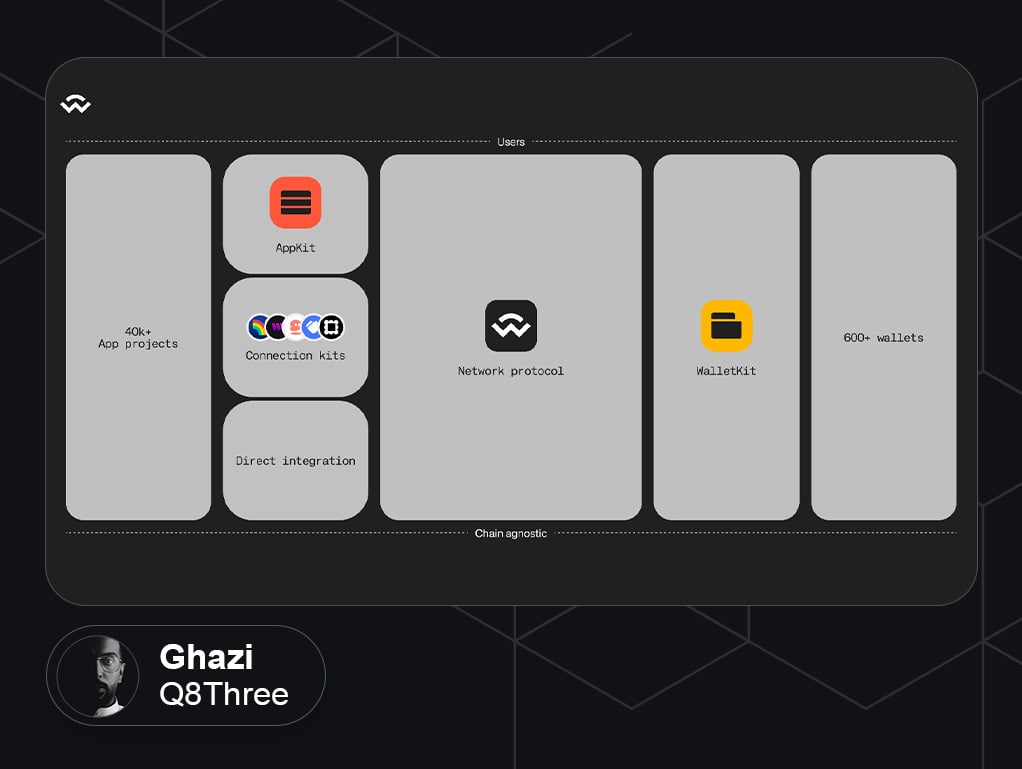 فالفكرة من المشروع باختصار هي أن شبكة WalletConnect تقدم بنية تحتية موحدة تدعم عدة شبكات وعدة محافظ، وتسهل على مطوري التطبيقات إتاحة خدماتهم لفئة أكبر من المستهلكين، وتسهل عملية الاستخدام للمستهلك من ناحية أنه لا يحتاج لأكثر من تطبيق أو محفظة لاستخدام تطبيق معين.